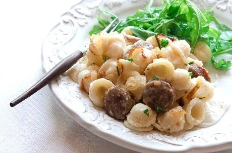 French pasta with Sausage and Caramelized Onions: Another attempt on my part to convince you all that the French do fabulous things with pasta.